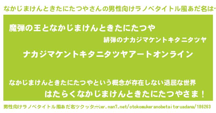 | 女子向けラノベタイトル風あだ名 | 『誰かこのなかじまけんときたにたつやを説明してください! ~契約から始まるウェディング~』 |