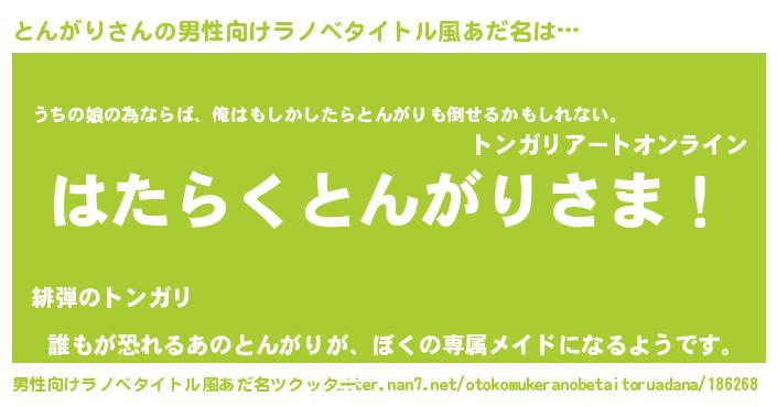 | ファンタジー風あだ名 | 『エターナルトンガリー』『トンフェル』 |