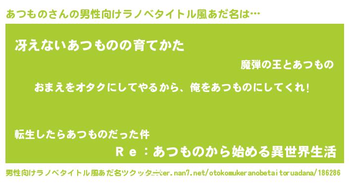 | 女子向けラノベタイトル風あだ名 | 『あつもの夫妻のなれそめ』 |