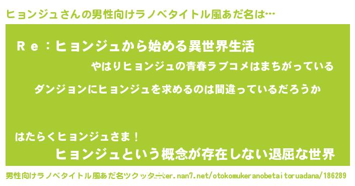 | 女子向けラノベタイトル風あだ名 | 『ヒョンジュは平凡を望む』 |