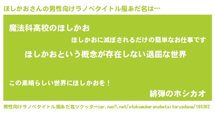 | 伝説のあだ名 | 『古より伝わる吟遊詩人ほしかお』 |