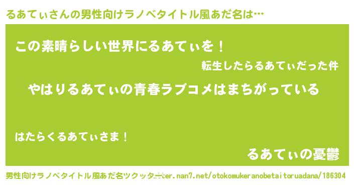 | 胡散臭い通販商品みたいなあだ名 | 『幸せが訪れる高級そうな壺…その名も「るあてぃ」』 |