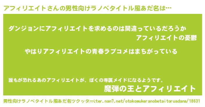 | 意味不明あだ名 | 『アフィリエイトフォーエバー』 |