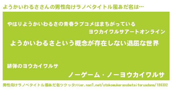 | 胡散臭い通販商品みたいなあだ名 | 『絶対に幸福をもたらす招き猫…その名も「ようかいわるさ」』 |