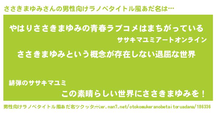 | 胡散臭い通販商品みたいなあだ名 | 『絶対に幸福をもたらす健康食品…その名も「ささきまゆみ」』 |