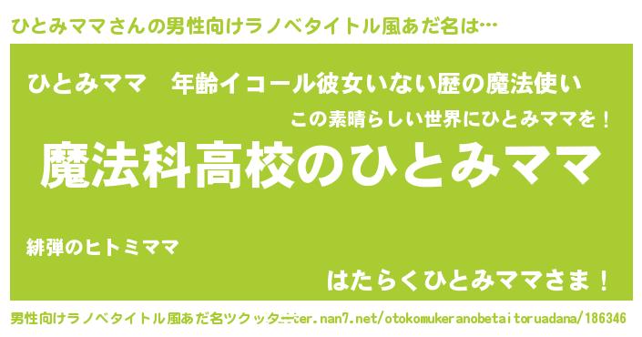 | 女子向けラノベタイトル風あだ名 | 『ひとみママなんてお断りですっ。』 |