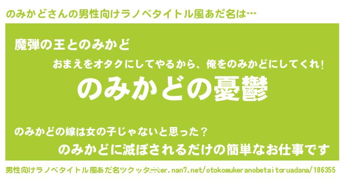 | 胡散臭い通販商品みたいなあだ名 | 『必ず成功するブレスレット…その名も「のみかど」』 |