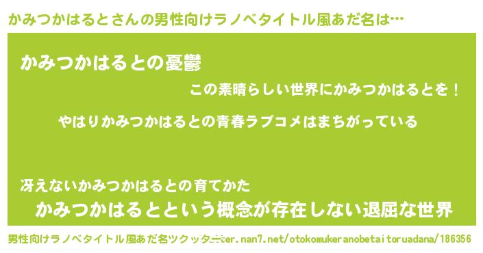 | 女子向けラノベタイトル風あだ名 | 『かみつかはるとの雑貨屋さん』 |