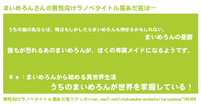 | 女子向けラノベタイトル風あだ名 | 『異世界でカフェまいめろんを開店しました。』 |