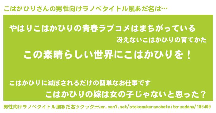 | 胡散臭い通販商品みたいなあだ名 | 『あなたにだけ特別に提供する限定10本のレアな日本酒…その名も「こはかひり」』 |