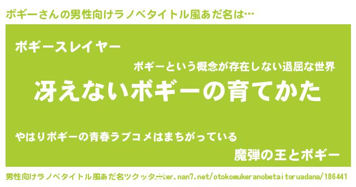 | 胡散臭い通販商品みたいなあだ名 | 『世界中を虜にした世界で10本だけ現存している希少なブランデー…その名も「ボギー」』 |
