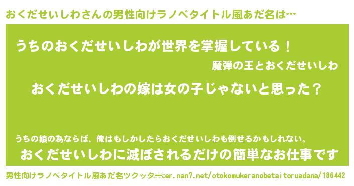 | 女子向けラノベタイトル風あだ名 | 『おくだせいしわの卵を拾いまして』 |