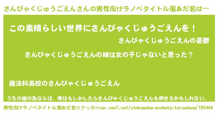 | 女子向けラノベタイトル風あだ名 | 『さんびゃくじゅうごえん様がみてる』 |