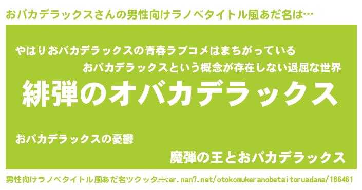 | 意味不明あだ名 | 『おバカデラックスフォーエバー』 |
