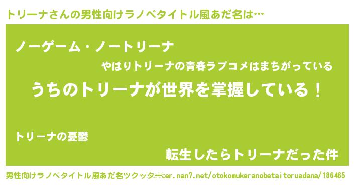 | 女子向けラノベタイトル風あだ名 | 『男装トリーナの憂鬱な任務』 |