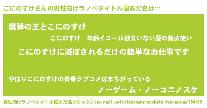 | 意味不明あだ名 | 『住所不定無職こにのすけ(12歳)』 |