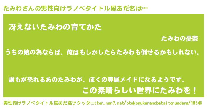 | 女子向けラノベタイトル風あだ名 | 『たみわ伯爵の花嫁』 |