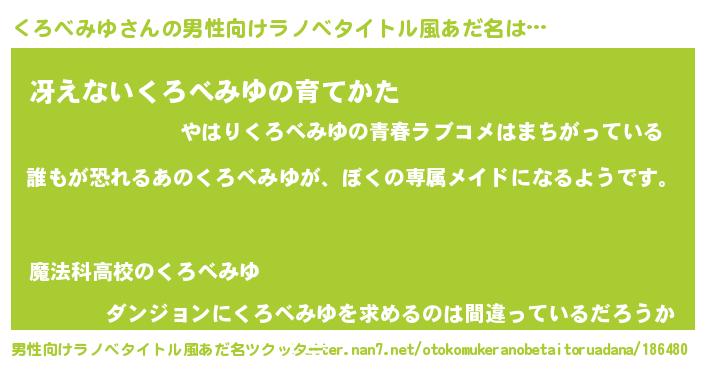 | 女子向けラノベタイトル風あだ名 | 『くろべみゆの契約王妃』 |