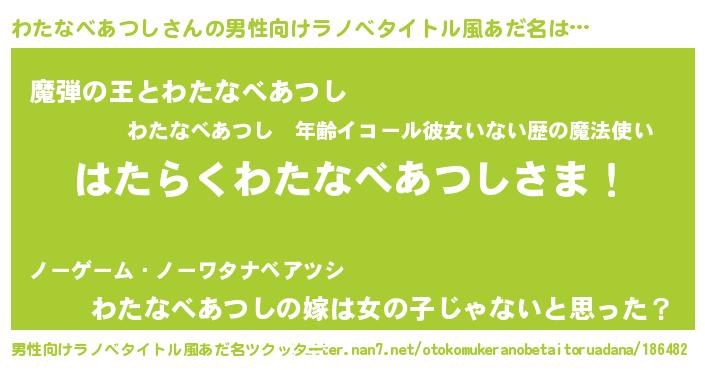 | 意味不明あだ名 | 『住所不定無職わたなべあつし(68歳)』 |