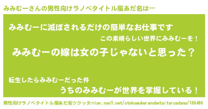 | 伝説のあだ名 | 『覚醒した遊び人みみむー』 |