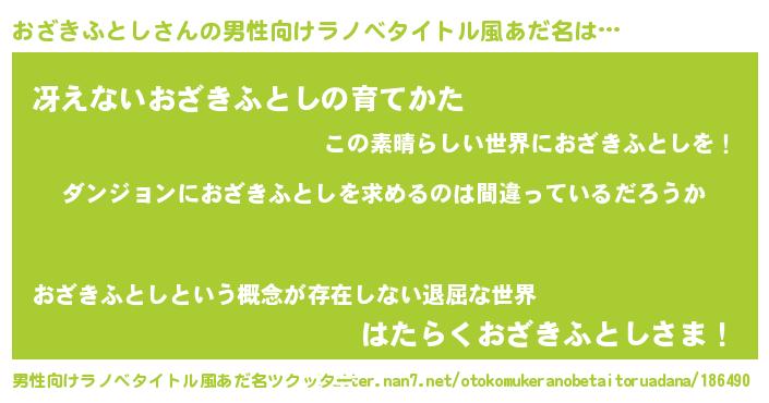 | 女子向けラノベタイトル風あだ名 | 『おざきふとしは平凡を望む』 |