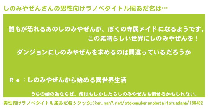 | 女子向けラノベタイトル風あだ名 | 『しのみやぜんの卵を拾いまして』 |