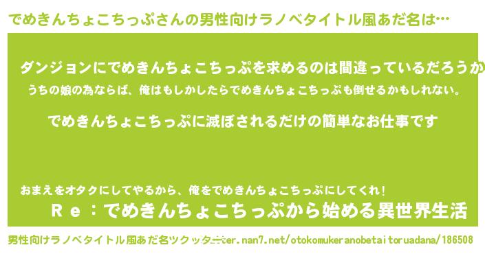 | 萌えアニメ | 主人公(でめきんちょこちっぷ)のあだ名『 でめ殿』 |