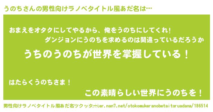 | ヒーロー風カッコイイあだ名 | 『天空の使者うのち』『仮面ウノダー』 |