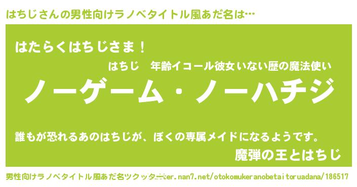 | 女子向けラノベタイトル風あだ名 | 『死神はちじの再婚』『はちじの契約王妃』 |