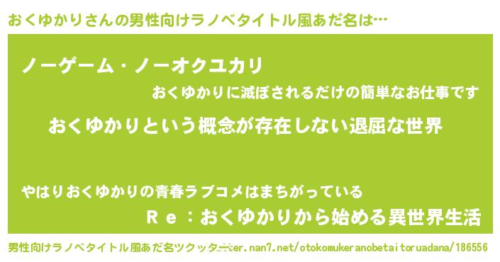 | 意味不明あだ名 | 『永久保存おくゆかり』『自称おくゆかり』 |
