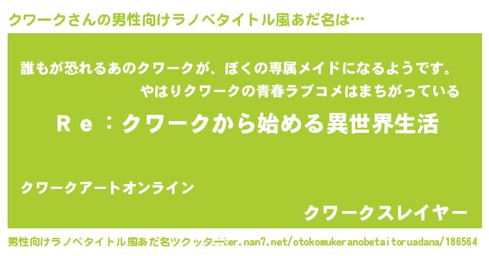 | 女子向けラノベタイトル風あだ名 | 『闇のクワーク』『クワークの雑貨屋さん』 |