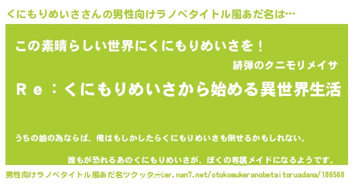 ヘコむあだ名 | 『くにもりめいさ(苦笑)』『酢こんぶ』 |