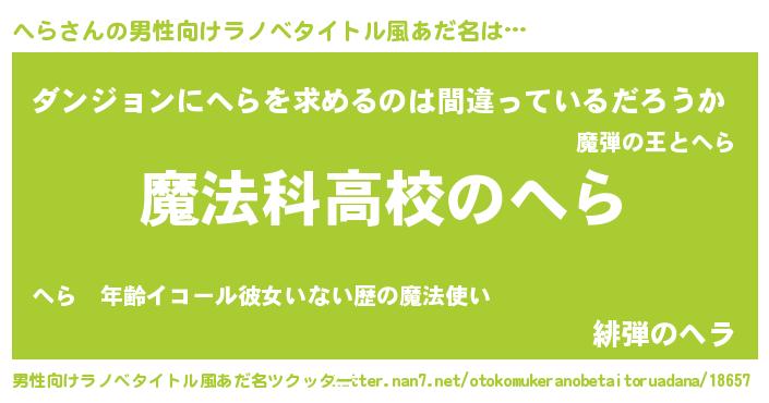 | 意味不明あだ名 | 『自称へら』『とにかく怪しいへら』 |