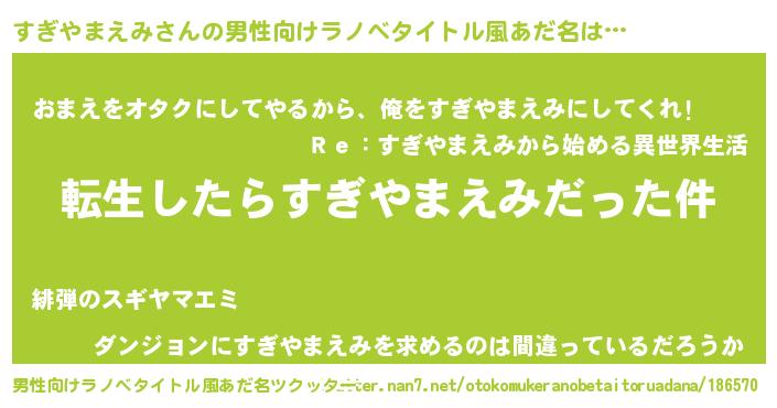 | 胡散臭い通販商品みたいなあだ名 | 『お金では代えられないマグネット磁石…その名も「すぎやまえみ」』 |