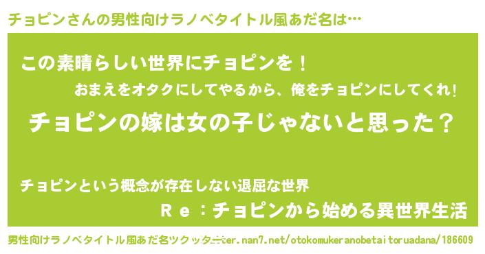 | 女子向けラノベタイトル風あだ名 | 『チョピン様がみてる』『チョピン恋絵巻』 |