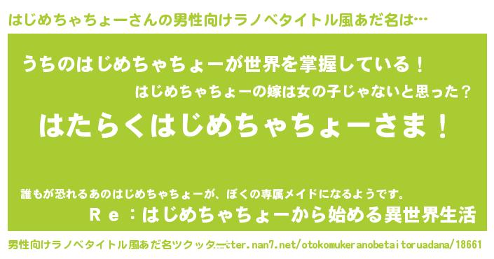 | ヒーロー風カッコイイあだ名 | 『超時空戦士ハジメチャチョー』 |