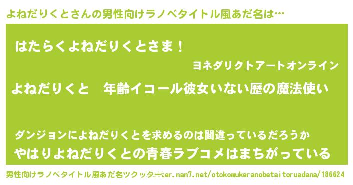| 女子向けラノベタイトル風あだ名 | 『よねだりくとの玉の輿計画!』 |