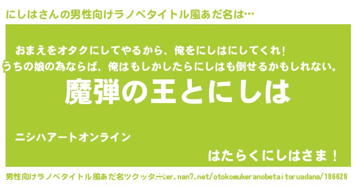 | 女子向けラノベタイトル風あだ名 | 『にしはが死なない童話 林檎のにしはの診療簿』 |