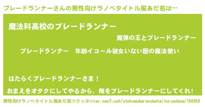 | 女子向けラノベタイトル風あだ名 | 『ブレードランナーの玉の輿計画!』 |