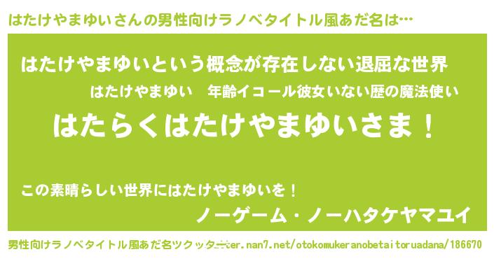 | 意味不明あだ名 | 『永久保存はたけやまゆい』 |