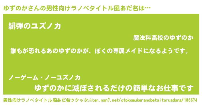 | ヒーロー風カッコイイあだ名 | 『ネオユズノカ』『超時空戦士ユズノカ』 |