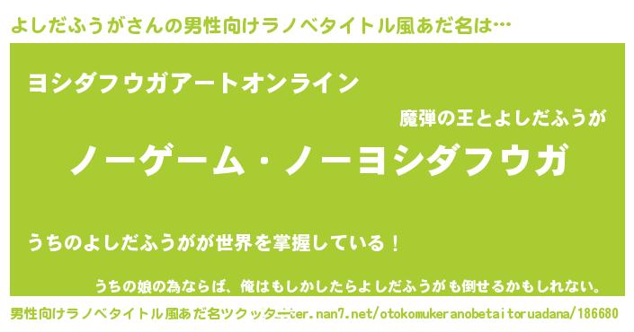 | 女子向けラノベタイトル風あだ名 | 『死神よしだふうがの再婚』 |