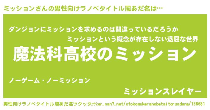 | 女子向けラノベタイトル風あだ名 | 『ミッションなんてお断りですっ。』 |