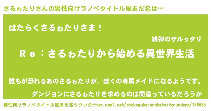 | 意味不明あだ名 | 『自称さるゎたり』『永久保存さるゎたり』 |