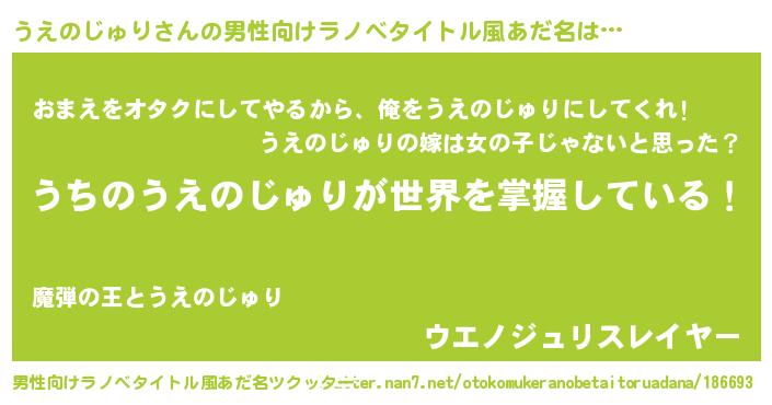 | 女子向けラノベタイトル風あだ名 | 『男装うえのじゅりの憂鬱な任務』 |