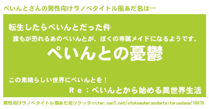 女子向けラノベタイトル風あだ名 | 『ぺいんと姫と円卓の騎士』 |