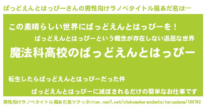 | 意味不明あだ名 | 『自称ばっどえんとはっぴー』 |