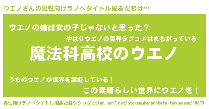 ウエノさんの男性向けラノベタイトル風あだ名をツクッター!