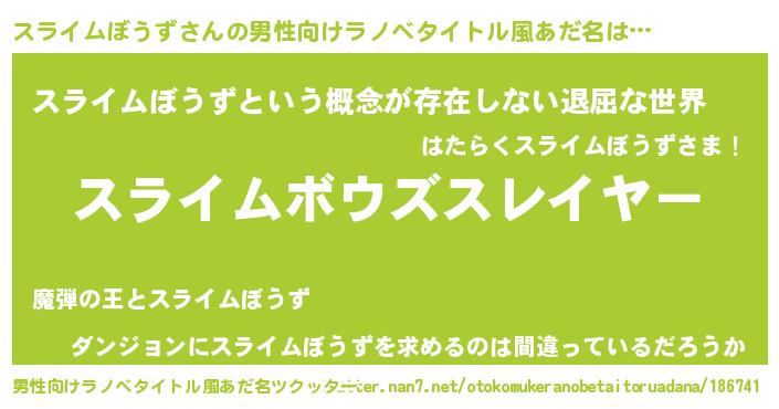 | 胡散臭い通販商品みたいなあだ名 | 『絶対に幸福をもたらす健康食品…その名も「スライムぼうず」』 |