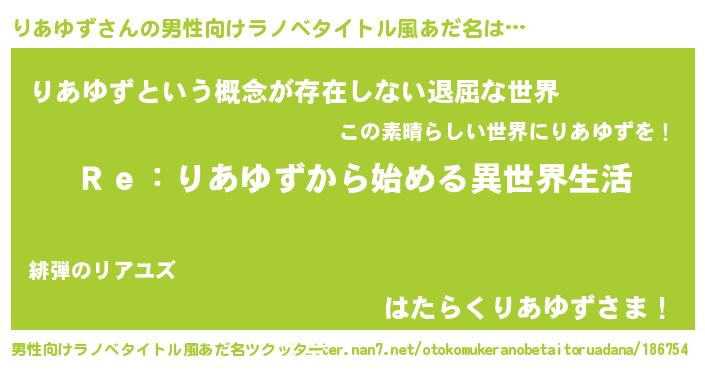 | 女子向けラノベタイトル風あだ名 | 『りあゆずストレイドッグス』 |